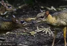 鼷鹿,别名小鼷鹿,共38个亚种。体形略比野兔大,体重1.3~2.0kg,体长420~630mm,肩高约200mm,是仅次于蹄兔目成员最小的有蹄类动物,也是鼷鹿科种体型最小的一种。面部尖长,无角,…全部>>