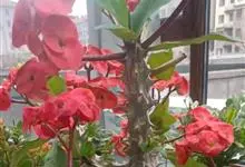 铁海棠为大戟科大戟属蔓生灌木植物;茎多分枝,具纵棱,呈旋转状;叶互生,通常集中于嫩枝上;每个花序基部边缘具微小的红色尖头;苞叶先端圆且具小尖头,无柄,上面鲜红色,下面淡红色;苞片丝状;子房光滑无毛,…全部>>