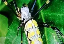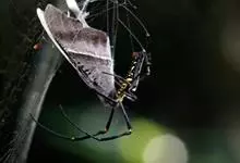 棒络新妇,是蜘蛛目肖蛸科络新妇属节肢动物。雄蛛体长约6毫米,背甲褐色,具黑色纵斑;步足黑色,有橙色环纹;腹部筒形、褐色,有黄斑;雌蛛体长约21毫米,背甲黑色,有大量银色长毛;触肢黄色,步足黑色,…全部>>