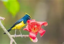 冕雀:共有4个亚种。体长20-21厘米,体重34-49克。具蓬松的黄色长型冠羽。雌鸟似雄鸟,但喉及胸深橄榄黄色,上体沾橄榄色。不会被误认的体大的黄色及黑色山雀。混群栖于原始林及次生林的林冠层,…全部>>
