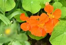 旱金莲是旱金莲科旱金莲属蔓生一年生草本植物。叶互生,叶柄向上扭曲,盾状,叶圆形,具波状浅缺刻,下面疏被毛或有乳点;花黄、紫、桔红或杂色,花托杯状,花瓣为圆形,边缘具缺刻;果实为扁球形;花果期6-10月,…全部>>