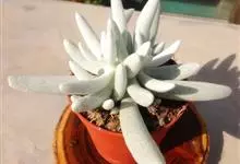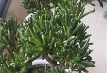 筒叶花月,是景天科青锁龙属的多年生草本植物。植株多分株,灌木状,茎较粗壮,圆柱形,表皮灰褐色;叶片肉质,互生,呈圆筒状,簇生于茎或分枝顶端,叶端呈斜截形,截面为椭圆形;花呈星状,淡白色;花期秋季。…全部>>