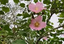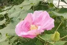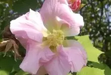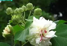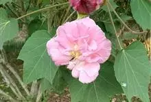 木芙蓉,锦葵科木槿属落叶灌木或小乔木。小枝上有细绒毛;叶片为卵状心形,托叶为披针形,常早落;花单生,花萼为钟形,花冠初为白色或淡红色,后逐渐变为深红色;果实为扁球形,有淡黄色的毛附着。花期8到10月。…全部>>