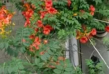 凌霄 Schum.),别名上树龙、五爪龙、九龙下海等,为紫葳科凌霄属的攀援藤本植物。其茎木质,以气生根攀附于它物之上。叶对生,为奇数羽状复叶;小叶卵形至卵状披针形,边缘有粗锯齿;顶生疏散的短圆锥花序,…全部>>