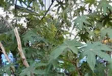 蓖麻是大戟科蓖麻属一年生粗壮草本或草质灌木。小枝、叶通常被白霜,茎直立,无毛,多液汁,绿色或稍带紫色,被白粉;叶轮廓近圆形,边缘具锯齿,叶柄粗壮,中空;蒴果卵球形或近球形,果皮具软刺或平滑;种子椭圆形,…全部>>