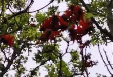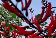鹦哥花是豆科刺桐属植物,小乔木或乔木。树干和枝条具皮刺。羽状复叶,叶柄平滑,顶生小叶近肾形,侧生小叶斜宽心形,两面无毛。总状花序生于先端叶腋,花鲜红色,大,具花梗,苞片单生,卵形,花萼陀螺形,花冠红…全部>>
