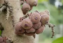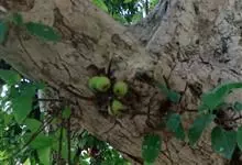 大果榕是桑科榕属的小乔木,株高可达10米;幼枝被柔毛;叶互生,宽卵状心形或近圆形;雄花无梗、匙形、花丝长,雌花生于雌株榕果内,子房白色;榕果簇生于树干基部或老茎短枝上、扁球形或陀螺形,…全部>>