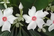 海杧果是夹竹桃科海杧果属的乔木。高4~8米;树皮为灰褐色;全株有丰富乳汁;叶厚纸质,呈倒卵状长圆形或倒卵状披针形,叶面为深绿色,叶背为浅绿色;花为白色,有芳香;核果双生或单个,呈阔卵形或球形,…全部>>