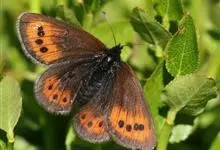 翅正面淡灰褐色,多褐色波纹状线,前后翅的外缘和亚缘线3条,中横线1条,前翅中室5条,从前室前缘到后翅cu2室有1列眼状纹,以两翅的m3室斑及cu1室斑为最显著,内半部橘红色,外半部黑色,…全部>>