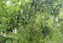 龙爪槐为乔木,高达25米;树皮灰褐色,具纵裂纹。当年生枝绿色,无毛。羽状复叶长达25厘米;叶轴初被疏柔毛,旋即脱净;叶柄基部膨大,包裹着芽。圆锥花序顶生,常呈金字塔形,…全部>>