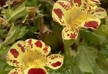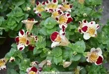 猴面花是玄参科,沟酸浆属多年生草本植物,常作1-2年生栽培。高可达40厘米,茎粗壮,中空。中交互对生,宽卵圆形。对生在叶腋内,漏斗状,黄色,通常有紫红色斑块或斑点。5-10月开花。全部>>