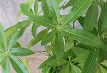 瓜栗 Walp. ),俗称发财树,木棉科小乔木,高4-5米,树冠较松散,幼枝栗褐色,无毛。小叶具短柄或近无柄。花单生枝顶叶腋;花梗粗壮,被黄色星状茸毛,脱落;萼杯状,近革质;花瓣淡黄绿色,狭披针形…全部>>