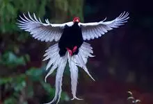 白鹇,是鸡形目雉科鹇属的一种留鸟。雄鸟上体白色并具黑色纹,下体黑色,头顶具黑色长羽冠,尾白而长;雌鸟体型较小,以橄榄褐色为主,下体具白色或皮黄色细纹;虹膜褐色,眼周具红色裸皮,喙黄色,脚鲜红色。…全部>>