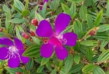 野牡丹:灌木,高0.5-1.5米,分枝多;茎钝四棱形或近圆柱形,毛扁平边缘流苏状。叶片坚纸质,卵形或广卵形,全缘,7基出脉,两面被糙伏毛及短柔毛。伞房花序生于分枝顶端,近头状,…全部>>